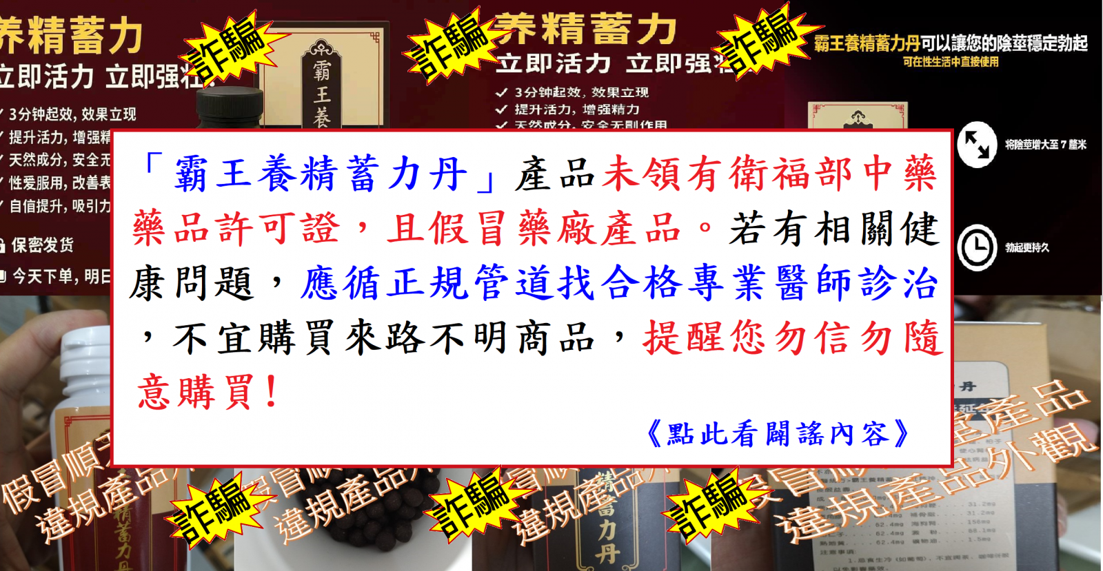 「霸王養精蓄力丹」未領有衛福部中藥藥品許可證,且假冒藥廠產品